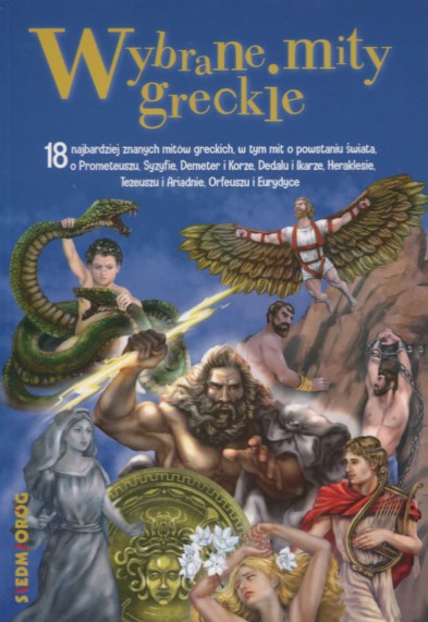 Na okładce: 18 najbardziej znanych mitów greckich, w tym mit o powstaniu świata, o Prometeuszu, Syzyfie, Demeter i Korze, Dedalu i Ikarze, Heraklesie, Tezeuszu i Ariadnie, Orfeuszu i Euredyce.