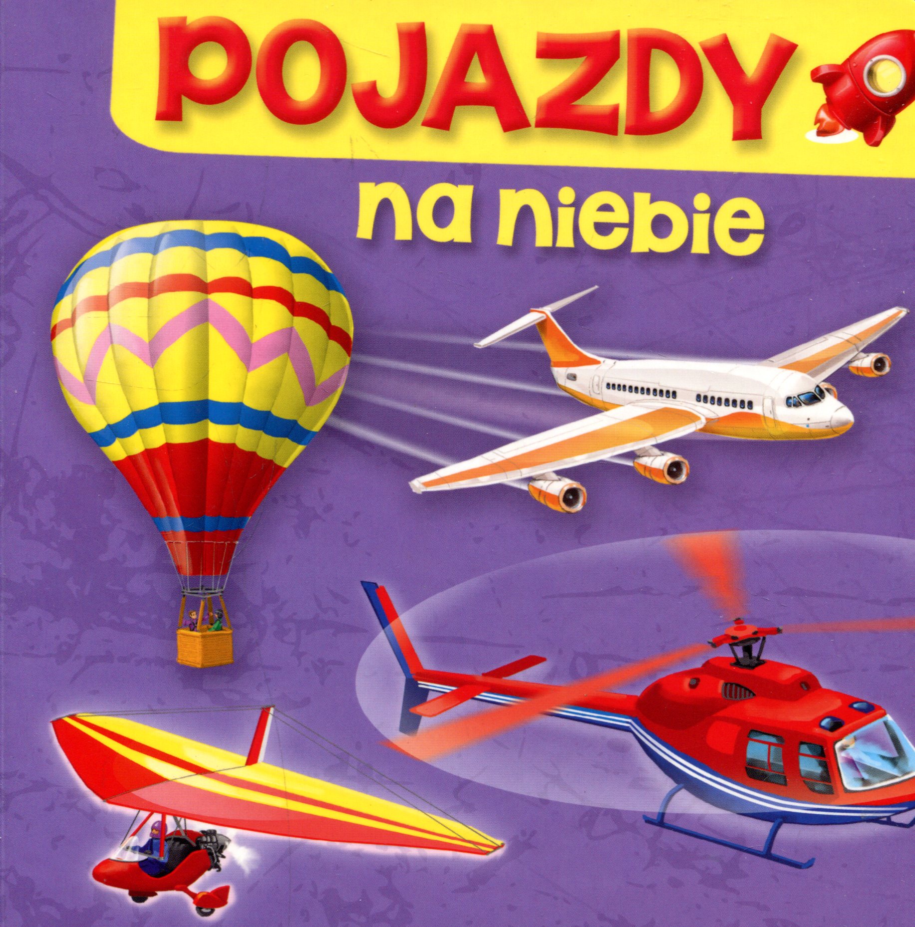 „Pojazdy” to seria poświęcona najpopularniejszym środkom transportu, jakie ciekawią najmłodszych. Atrakcyjne, wyjątkowo kolorowe ilustracje oraz proste rymowane teksty - to główne atuty tej serii. Wierszyki pełnią również funkcję edukacyjną, ponieważ objaśniają działanie każdego pojazdu. W części zatytułowanej „Na niebie” prezentowane są: samolot, helikopter, lotnia, balon oraz rakieta kosmiczna.