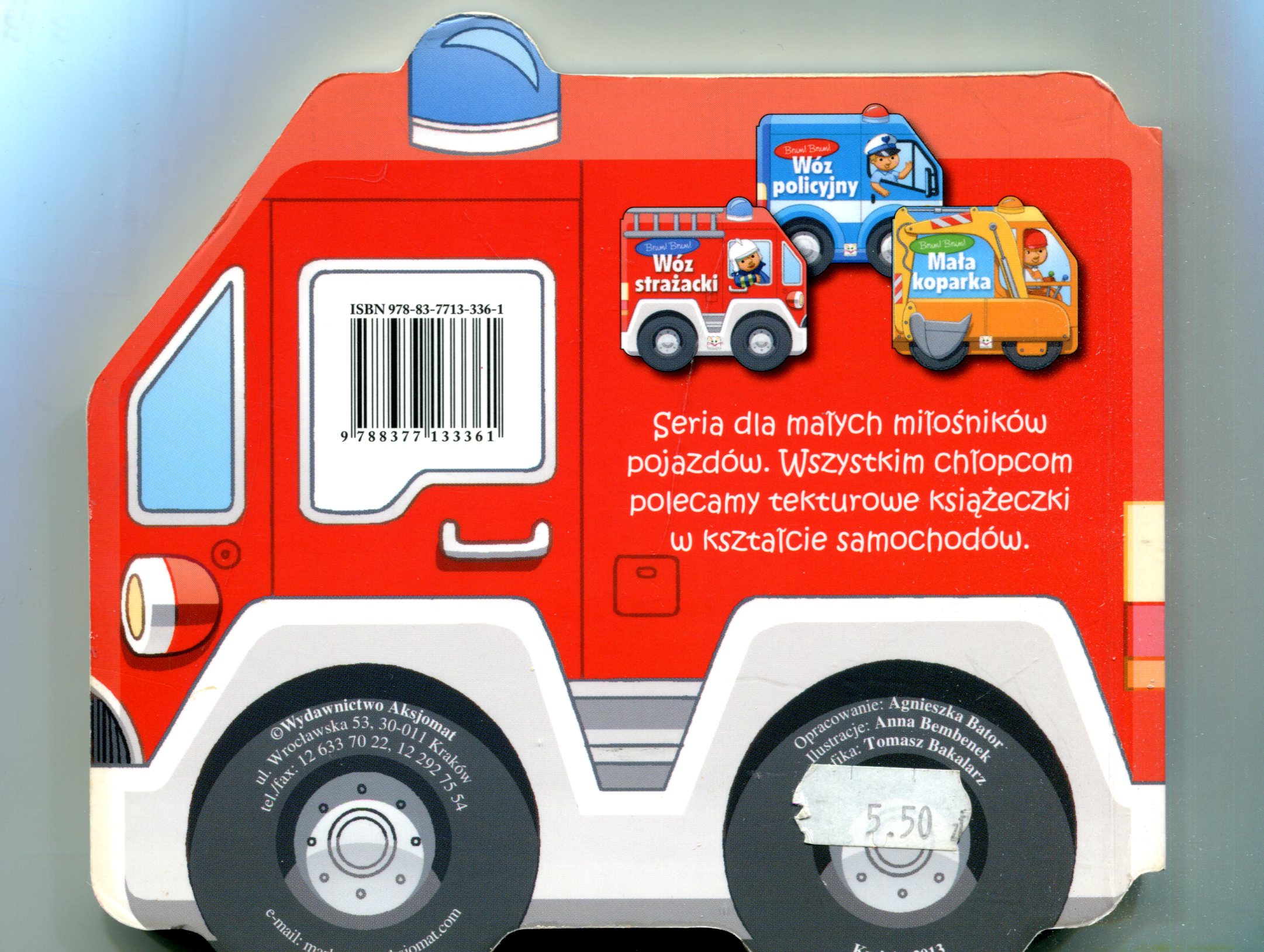 Książeczka w kształcie samochodu.