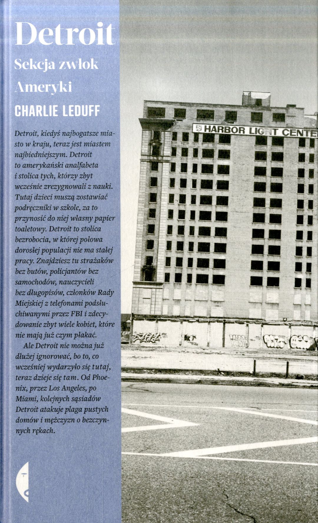 Detroit – niegdyś w amerykańskiej awangardzie, słynące z wielkiego przemysłu, nowatorskich rozwiązań, śmiałych biznesmenów i znanych na całym świecie samochodów – dziś jest stolicą bezrobocia, nędzy i przestępczości. Charlie LeDuff, zdobywca Nagrody Pulitzera, porzuca pracę w „New York Timesie” i wraca do miasta, w którym się urodził. Puka do drzwi wpływowych polityków, wędruje przez squaty, rozmawia z bezdomnymi i przedsiębiorcami, z właścicielami pustostanów, policjantami i strażakami walczącymi z plagą podpaleń, wreszcie sięga do tragicznych losów własnej rodziny i próbuje zrozumieć, co stało się przyczyną upadku jednego z najbogatszych kiedyś miast Ameryki. [Opis pochodzi od wydawcy].