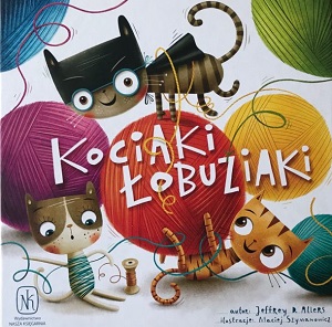 Kociaki łobuziaki [Gra] / Jeffrey D. Allers ; ilustracje Maciej Szymanowicz. - Wydanie 2. - Warszawa : Nasza Księgarnia, copyright 2018. - 1 gra (4 plansze graczy, 4 szpulki, 50 żetonów zabawek, 4 sznurki, 20 płytek mebli (po 5 w 4 kolorach), 1 znacznik gracza rozpoczynającego) karton, tekstylia, kolor ; w pudełku 6x29x29 cm + instrukcja ([4] strony : ilustracje ; 29 cm).