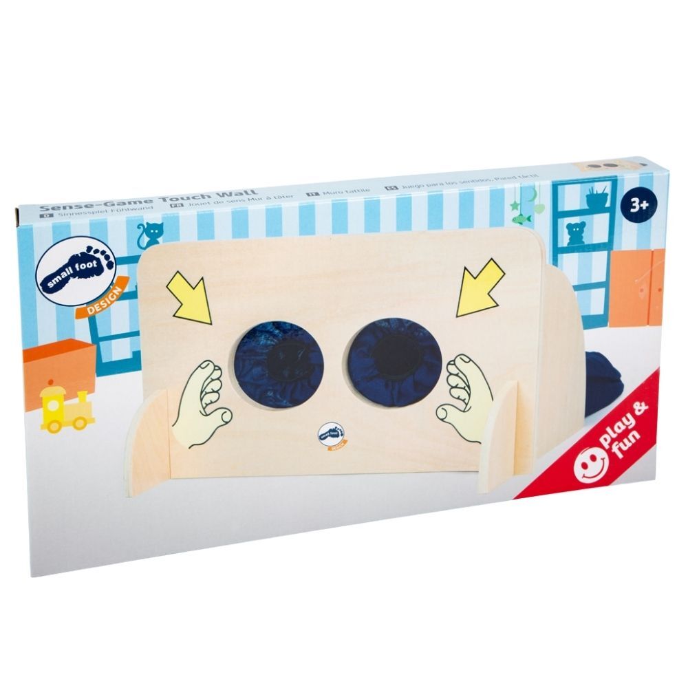 Sense-Game Touch Wall [Gra]. - Wodzisław Śl. : Delmenhorst : IXION Sp. z o.o. ; Small Foot, [2024]. - 1 gra (1 zabawka z doszytym workiem) : drewno, materiał, kolor ; w pudełku 41x21x4 cm.
